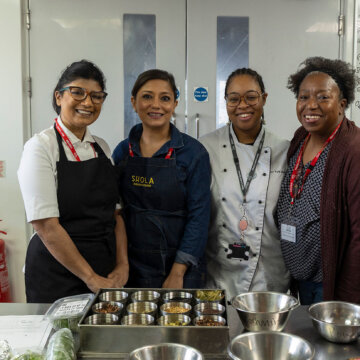 Women in The Food Industry and Anjula Devi, Author of best-selling cookbook 15 Minute Indian and Consultant Chef for Manchester Utd teamed up with chef Aida Khan to provide a spice masterclass for one of West London’s largest catering colleges – West London College – Hammersmith & Fulham Campus. Chef Lecturer of West London College, Kyla Bertrand was on hand to ensure her students got the most from the day.